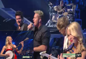 Rascal Flatts started out with this cutie banjo player named Ashley Campbell, and rocked the stage in their typical style, then brought out Journey. Didn't know if I should get off the couch and put on my boots or just get out the lighter to watch this clip.